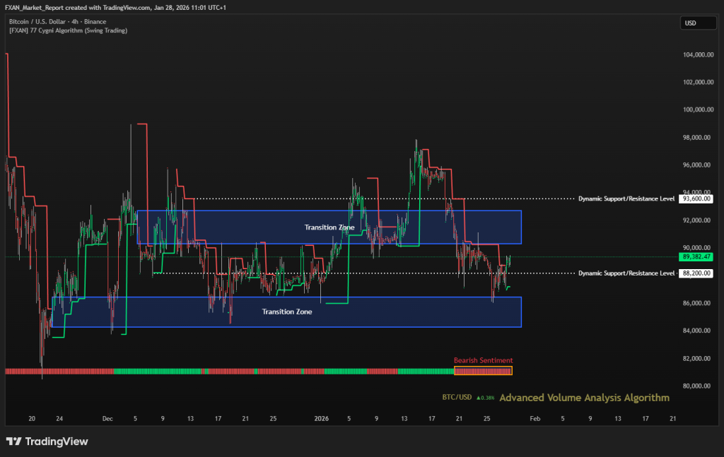 Bearish – BTC/USD remains under bearish sentiment for the last eight days, with price continuing to trade below key structural resistance. The market shows weak recovery attempts, indicating persistent selling pressure and limited bullish follow through. Recent price action suggests distribution rather than accumulation. As long as price remains capped below major resistance, downside risks remain elevated.