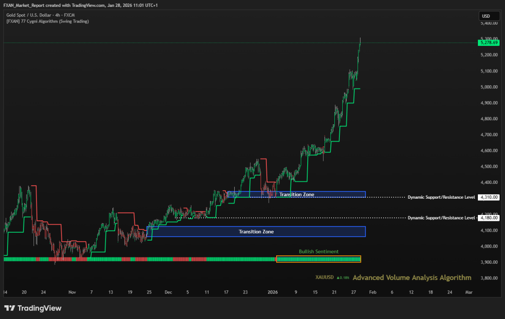 Gold is currently in a strong price discovery phase, reflecting robust demand and trend strength. Momentum remains elevated, suggesting that pullbacks are likely to remain corrective rather than trend reversing. Volatility expansion favors continuation as long as dynamic supports hold. Overall, market conditions continue to support a bullish outlook with buyers firmly in control.