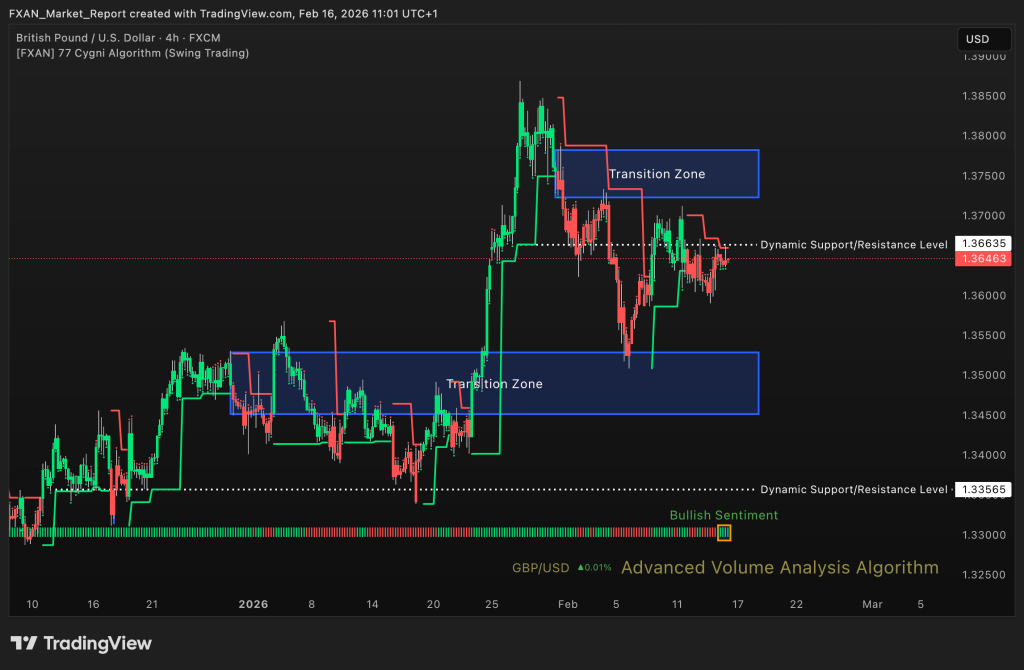 Bullish – EUR/USD maintains a bullish sentiment for more than a week, supported by a steady sequence of higher highs and higher lows. Price continues to trade comfortably above reclaimed support levels, reinforcing underlying strength. Pullbacks remain controlled and corrective rather than impulsive. The broader structure favors continuation to the upside while key supports hold.