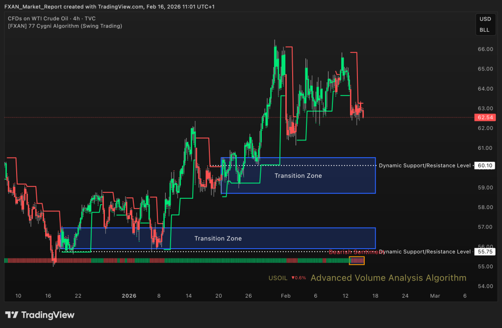 Oil remains under pressure with limited bullish recovery strength. Price behavior suggests distribution rather than accumulation. Selling activity increases on rallies. Bearish momentum persists while price trades under resistance levels.