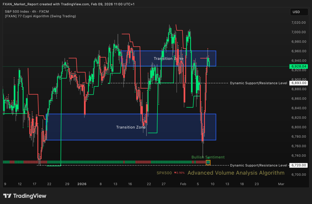 Bullish – The S&P 500 maintains a bullish sentiment for more than a week, supported by strong recovery moves and higher structure. Buyers continue to defend pullbacks aggressively. Market participation remains constructive despite periods of volatility. Overall structure favors continuation to the upside.
