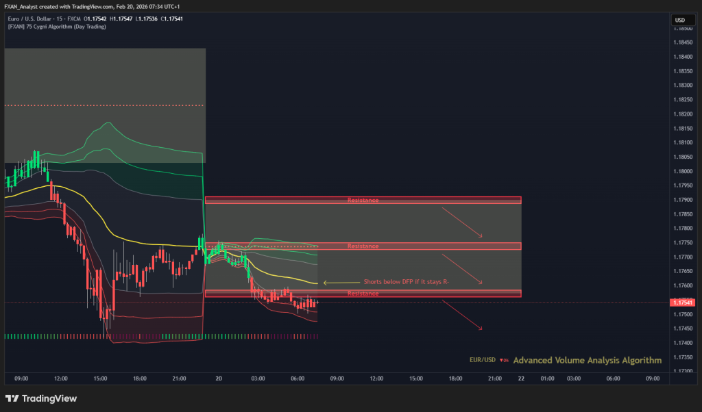 The sentiment is bearish as price continues to trade below the dynamic fair price zone, reflecting sustained downside pressure and a weak short-term structure. Key resistance levels at 1.17580, 1.17740, and 1.17900 are expected to cap corrective rallies and maintain downside continuation if price reacts from these zones.
